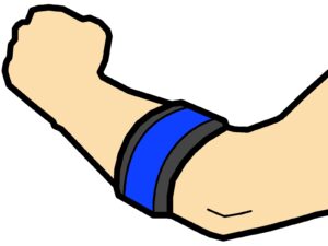 なのでエルボーバンドっていうのを腕に巻くことで