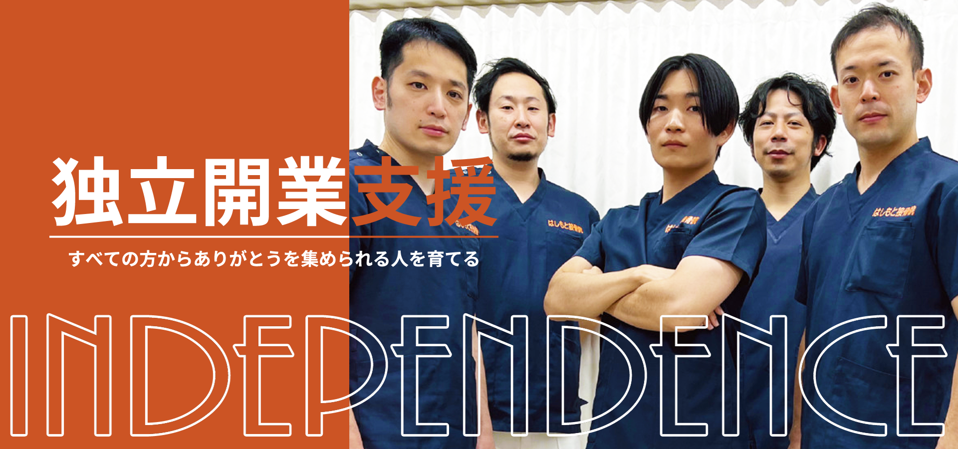 そんな方たちが自信と誇りを持って自分の院を持ち「治療家」として豊かな人生を歩んでもらいたい。そんな想いから、はしもと接骨院で働く将来独立希望の治療家が安心して独立出来るような待遇をご用意しています。